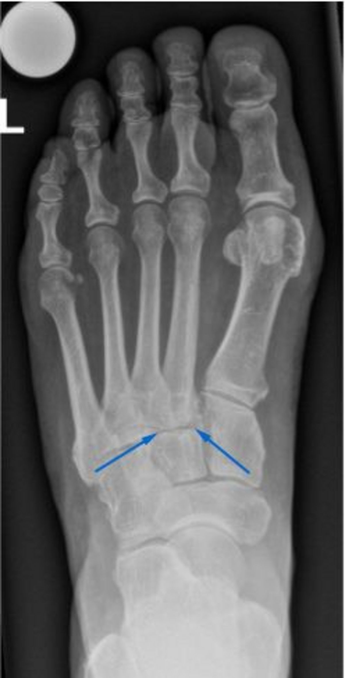 Röntgenbilder sind zur Diagnosestellung hilfreich. Zum einen zeigen sie meist bereits die Arthrose der Gelenke, zum anderen kann ihre Stabilität beurteilt werden. Aufgrund der Form des Fussgewölbes sind Röntgenbilder mehrerer Ebenen notwendig, um eine zuverlässige Aussage treffen zu können. Unter Umständen ist zusätzlich eine Magnetresonanztomographie (MRT bzw. engl. MRI für magnetic resonance imaging) nötig, um das genaue Ausmass der Arthrose und Verletzung des Mittelfusses bestimmen zu können.