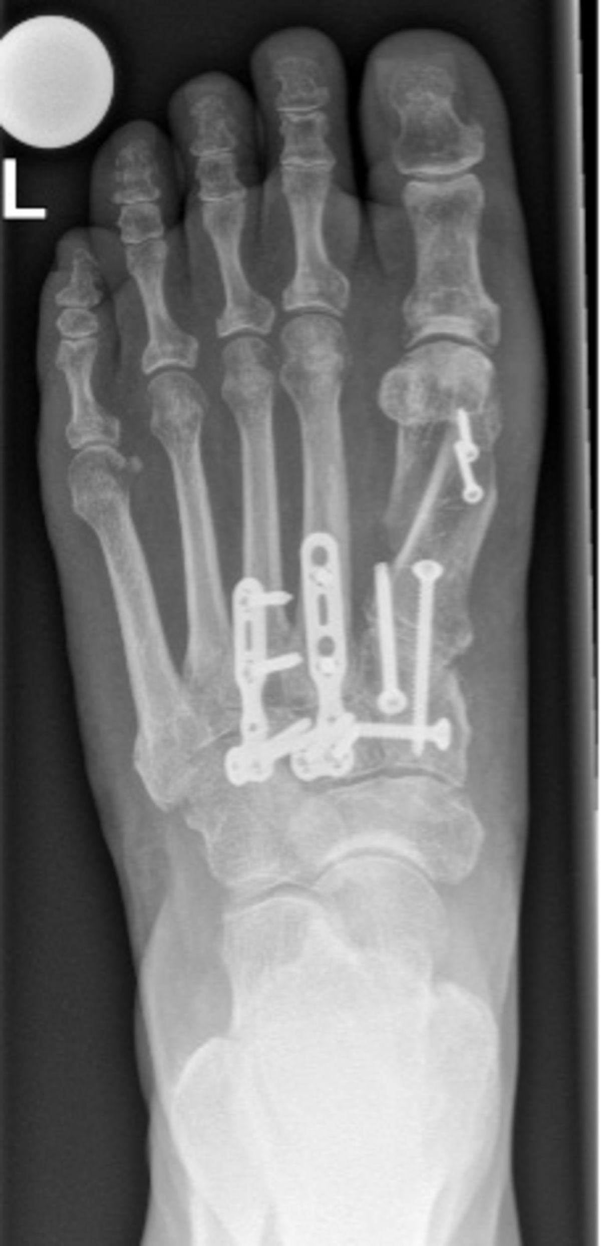- Sangeorzan BJ, Veith RG, Hansen ST. Salvage of Lisfranc’s tarsometatarsal joint by arthrodesis. Foot Ankle. 1990;10:193-200.