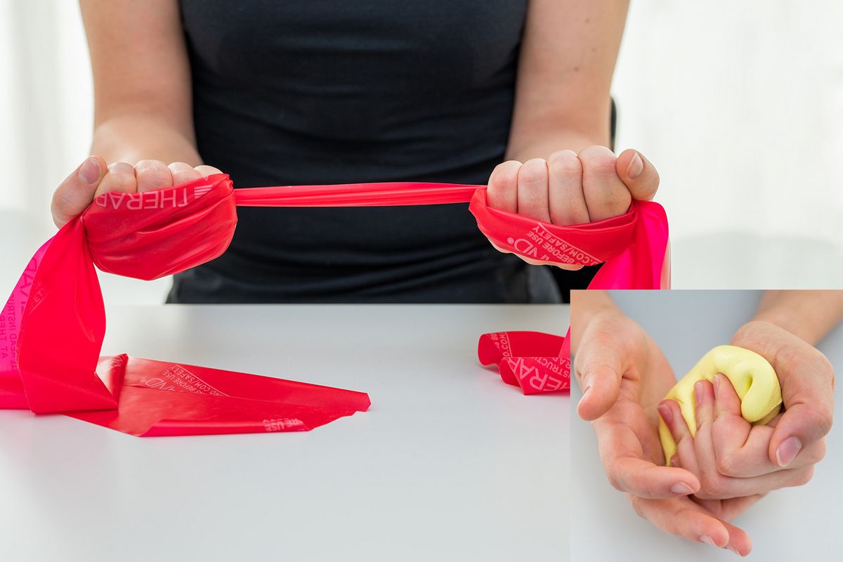 We use manual therapies to mobilize your joint structures and the ligamentous apparatus and musculature actively or passively. We strengthen the partially paralyzed muscles in the hands and arms in a targeted manner and thus counteract muscle shortening and stiffness. Simple but effective training equipment includes therapy bands and therapy modeling clay.