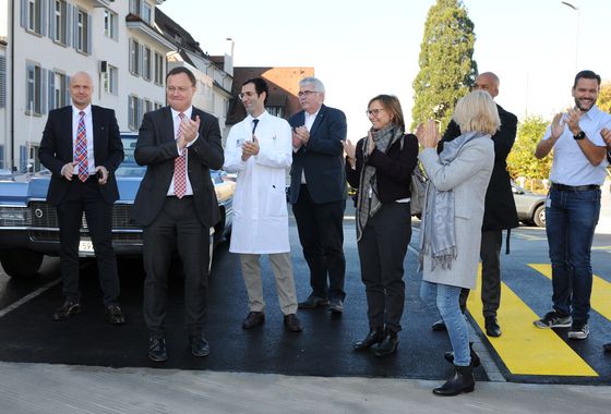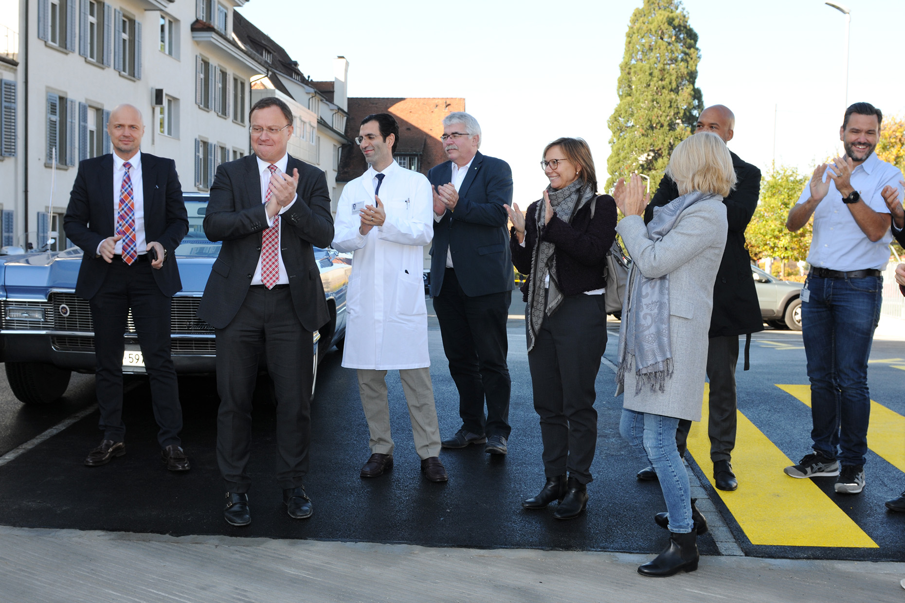 Nach über einem Jahr Bauzeit ist die neue Tiefgarage am 1. November feierlich eröffnet worden. Die geladenen Gäste, darunter die Baukommission, involvierte Baufirmen sowie die Vorstandsmitglieder, fanden Gefallen an der kurzen Old-Timer-Fahrt auf dem Klinikareal. Rita Fuhrer und Hans Rutschmann, beides Vorstandsmitglieder des Schweizerischen Vereins Balgrist, haben gemeinsam das Band zur offiziellen Eröffnung durchgeschnitten. Dank der Erweiterung entstehen einerseits wettergeschützte Parkmöglichkeiten und andererseits ein direkter Zugang zur Klinik via Tiefgarage.
